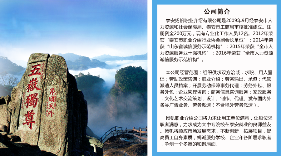 • 【招聘公告】泰安揚(yáng)帆職業(yè)介紹有限公司某國有企業(yè)招聘簡章 [2025-10-10]